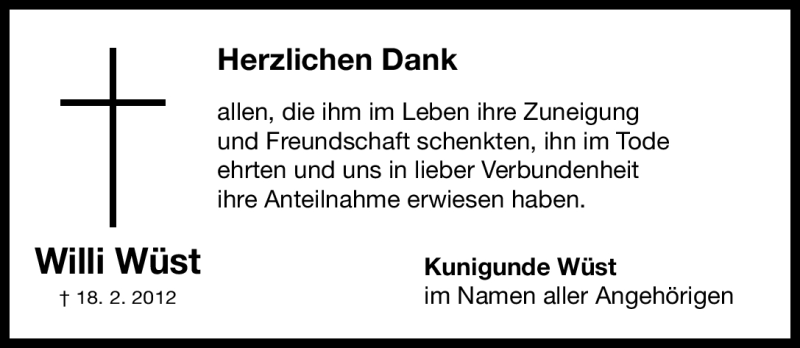 Hier finden Sie alle Traueranzeigen aus der Zeitung, die bisher für Willi Wüst erschienen sind. Weitere Traueranzeigen, die in der Zeitung erscheinen, werden hier ebenfalls aufgelistet
