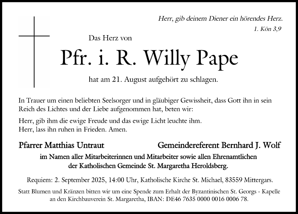 Hier finden Sie alle Traueranzeigen aus der Zeitung, die bisher für Willy Pape erschienen sind. Weitere Traueranzeigen, die in der Zeitung erscheinen, werden hier ebenfalls aufgelistet