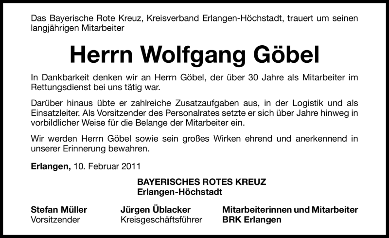 Hier finden Sie alle Traueranzeigen aus der Zeitung, die bisher für Wolfgang Göbel erschienen sind. Weitere Traueranzeigen, die in der Zeitung erscheinen, werden hier ebenfalls aufgelistet